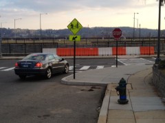 The "temporary" fence at Barney Circle SE. Dangerous and ugly.