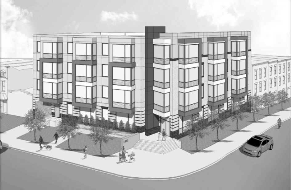 Rendering of 41-unit condo building planned for 1500 Penn Ave SE. Produced by Bonstra Haresign Architects.