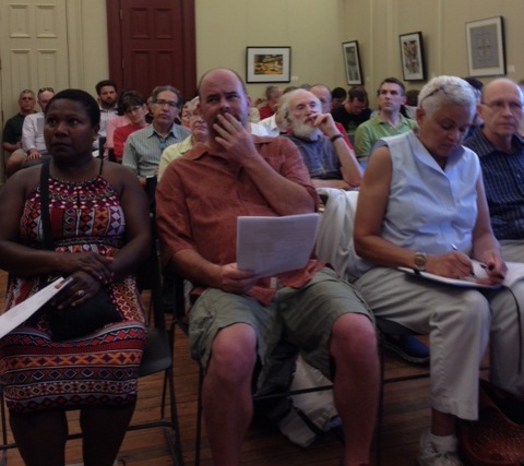 Attendees listen to the Office of Planning’s presentation at the Aug. 4 Barney Circle-SE Blvd. meeting.